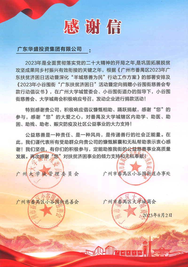 为积极响应广州市番禺区小谷围街“广东扶贫济困日”活动暨定向捐赠小谷围街慈善会专款行动的倡议,KY开元官网集团一如既往支持公益,特向小谷围街慈善会捐款善款数万元,持续向社会传递关爱,诠释责任与担当。