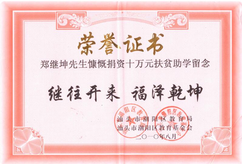 集团郑继坤董事长连续7年扶助家乡贫困学子,使不少家境贫困的学生圆了大学梦,如此善举,深为家乡人民敬颂。