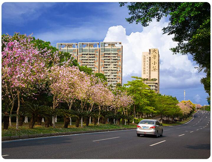 来过大学城的人,都会深有感触,宁静、绿色、含蓄、内敛是这里最大的特色。大学城前临珠江出海口,空气流通清新;后有万亩果园,是广州永久的南部氧吧,岛上还有中心湖、三大湿地公园,翠草繁花,有着超过55%的绿地率,堪称广州“绿心”。基础设施配套方面亦是样样齐备,且拥有十所高校的文化底蕴,人文气息浓郁。